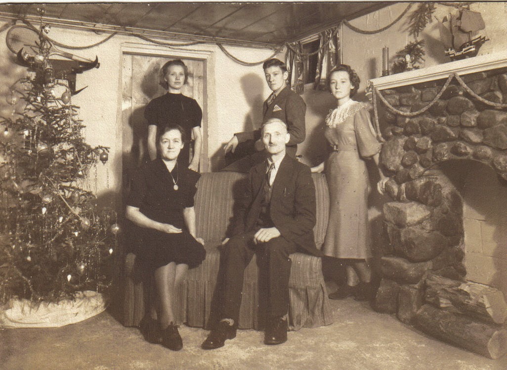 This is the Holmquist family in the festive living room of their home in Mahtomedi, Minnesota. William Arvid is seated, with his wife, Hilder; their three children – Ruth, Arvid Wesley (“Bud”), and Lillian (“Lil”) behind them.
