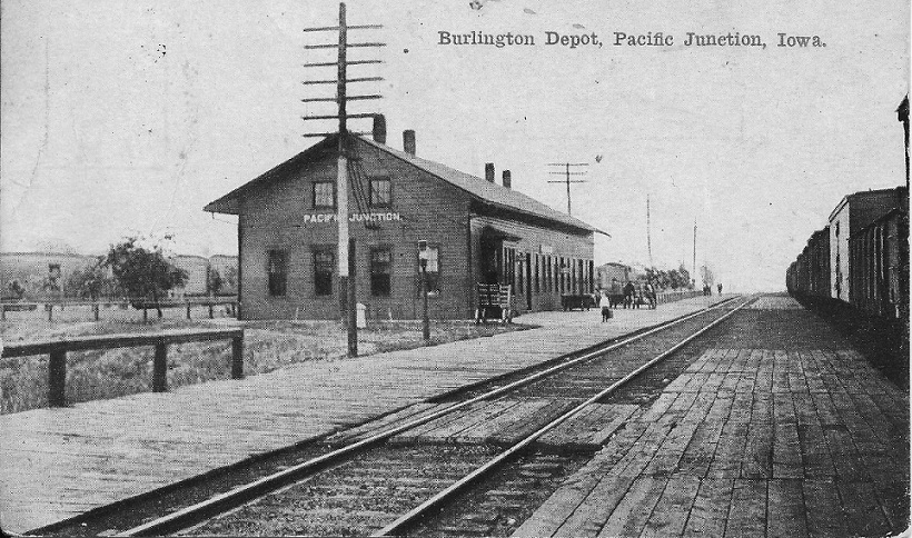 Burlington Depot, Pacific Junction, Iowa (from the Mills County, Iowa IAGenWeb Project)