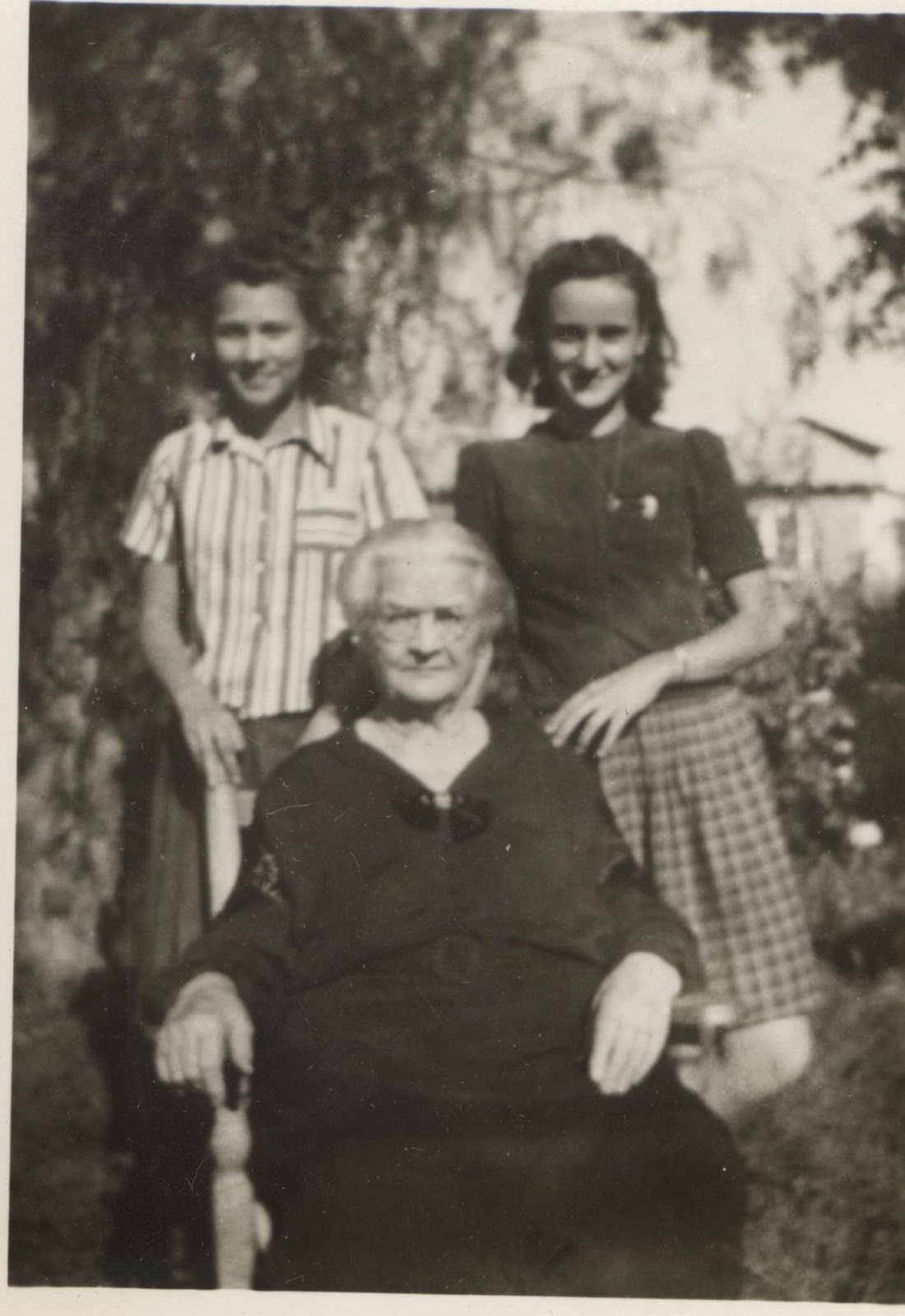 In high school, Nancy’s best friend was Bobbe Harris, and it seems they did just about everything together. Here we see them visiting Nancy’s grandmother, Rosa Murray Huff. (Rosa and I share a birthday – only separated by 111 years!)