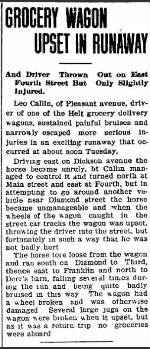 In September 1910, Leo’s horse became unmanageable, and Leo was thrown from his wagon into the street.