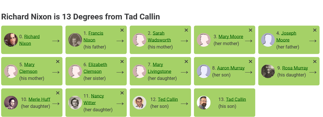Another wrinkle in researching this family that I had somehow forgotten about: The Nixon Connection. In 2015, I wrote up what I knew about my family’s connection to U.S. President Richard Nixon and realized that I had a lot of work to do before I could claim that I had verified those connections.