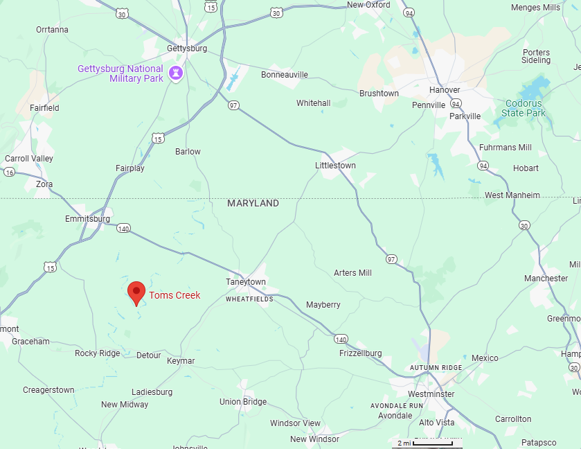 With all the evidence laid out, I am reasonably comfortable accepting the premise that John Witter and his wife, Catherine, lived in Tom’s Creek Hundred, about 16 miles south of Gettysburg, Pennsylvania. John was born about 1755 and lived in the Toms Creek area from as early as 1783 until 1797.