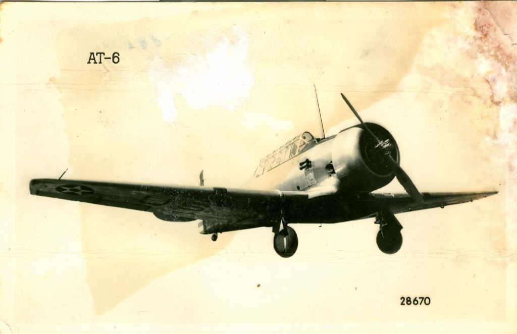 There are other things that probably bear mentioning, but are hard to include on a WikiTree profile. We know that Bob was an aircraft mechanic during the war, and I remember him showing me this postcard of the AT-6, a training variant of the T-6 Texan, and telling me that was the aircraft he maintained at Luke and Yuma airfields, where U.S. pilots trained. I also know that he got his personal pilot’s license in 1968 – we have this photo of him with his airplane, and a pilot’s log that was in with Great-grandma Bertha’s scrapbook and all of the Callin/Witter/Huff photos.