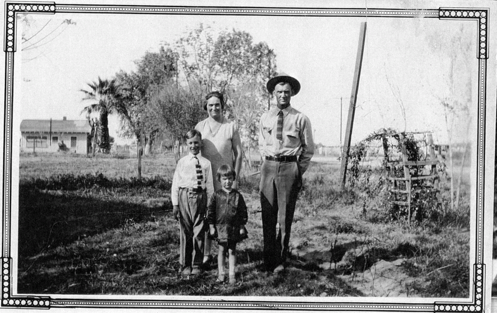 According to Grandma Merle’s Travelogue, Dick went to Arizona a couple of years after this family portrait was taken, in 1910 or 1911. He worked the beet farms and stayed with his Uncle Charlie Gilbert and Aunt Eunice. Eunice was Ella’s sister. Merle described how he stayed in a tent camp in the fields and eventually bought himself a few acres to farm.